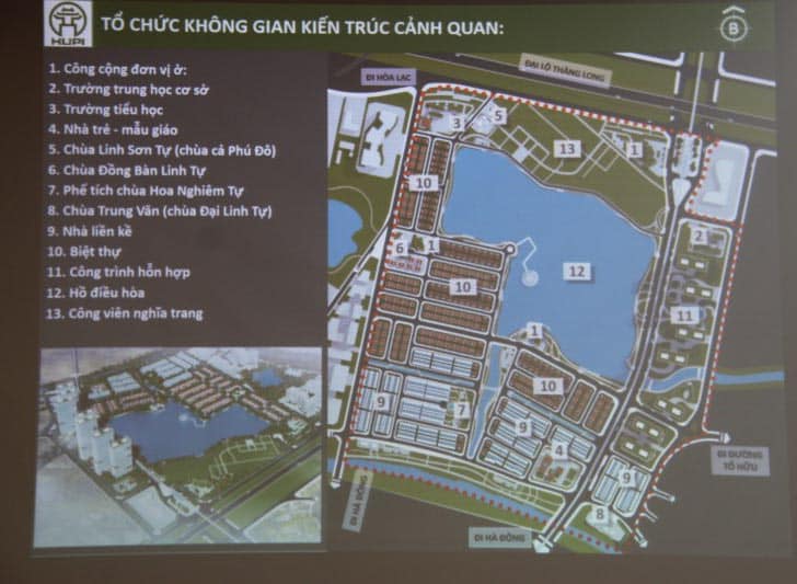 - Phía Đông giáp khu vực dự kiến bố trí 7 trụ sở các Bộ Ngành Trung ương và khu dân cư hiện có.